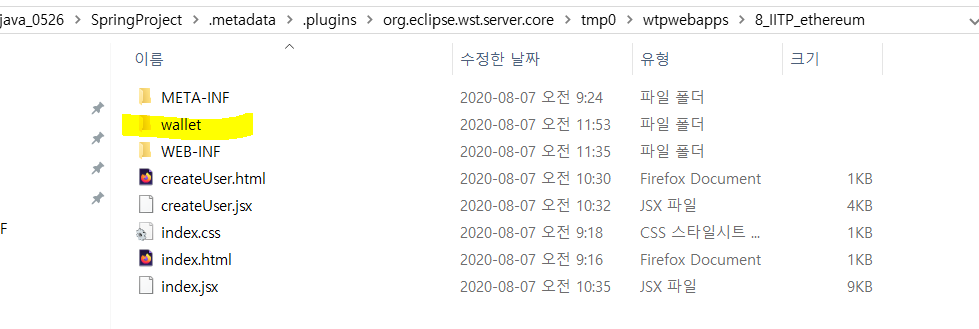 그리고 wallet 폴더 보시면 다음과 같이 정보가 저장되있는 것을 확인할 수 있쥬!!
