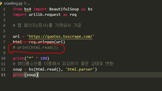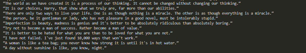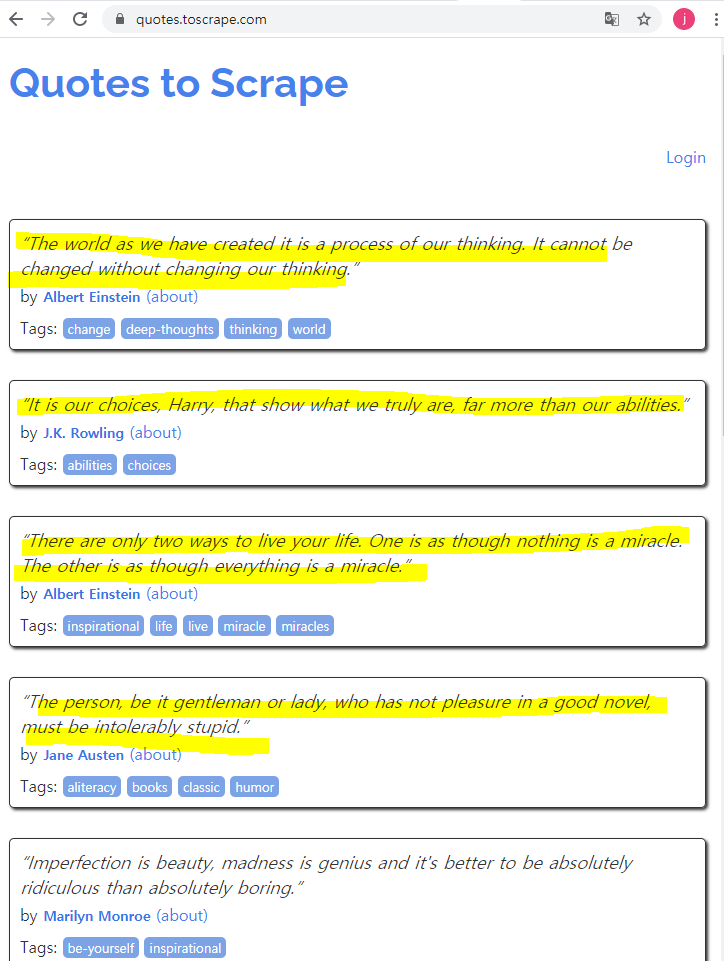 이제 다음 코드 넣어서 명언만 출력해내기